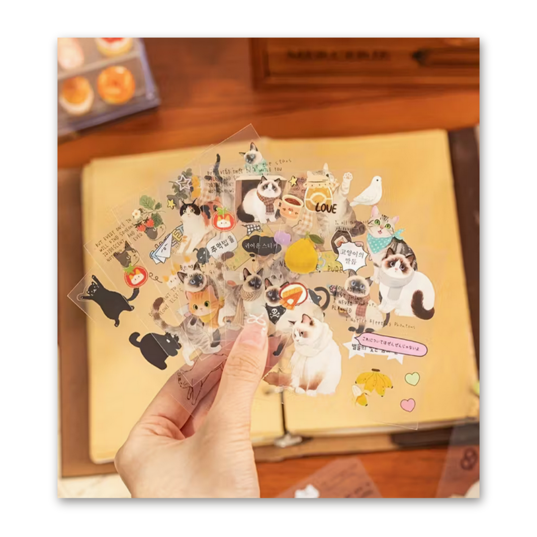 Treat yourself to this 20 sheets decorative sticker book featuring beautiful cat designs. These are perfect for creative diary writing, DIY, scrapbooking, bullet journals, junk journals, greeting cards, background albums, and crafts. But first of all these are perfect for postcard decorating. Just pick your mood and style!