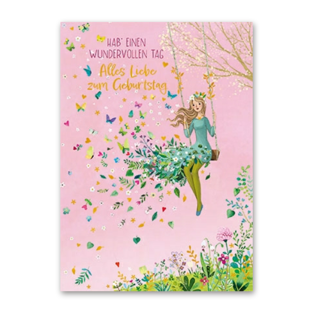 Postcard Frau auf Schaukel, Mila Marquis