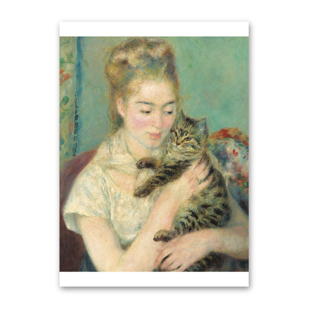 Postcard Frau mit Katze, Auguste Renoir