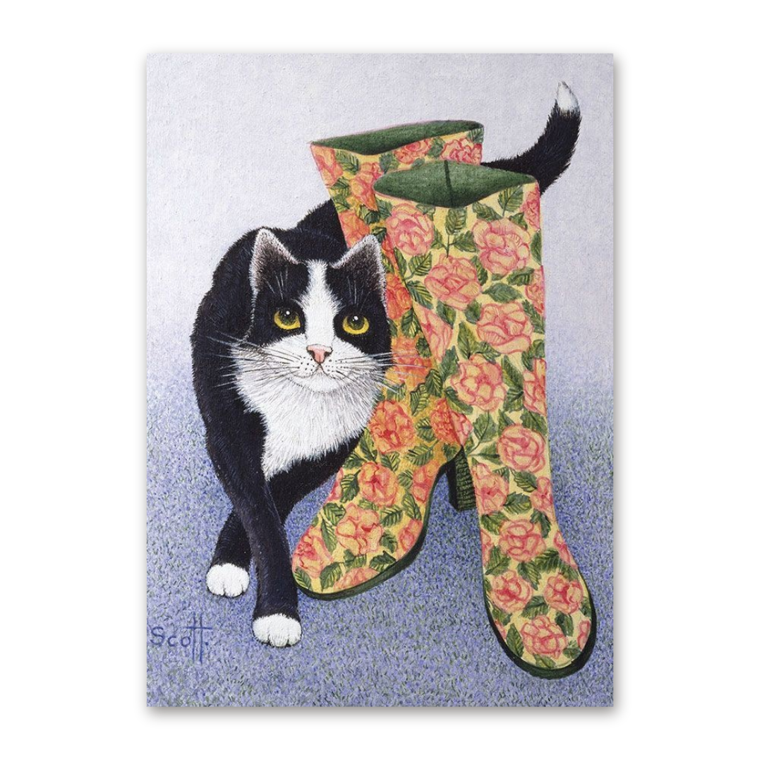 Black, white, tabby, and exotic. In a basket or on a suitcase. Alone or with family. For decades, Pat Scott has captured the hearts of her audience with colorful, cheerful, and even quirky cat illustrations. For every cat, for every situation, for all cat lovers.