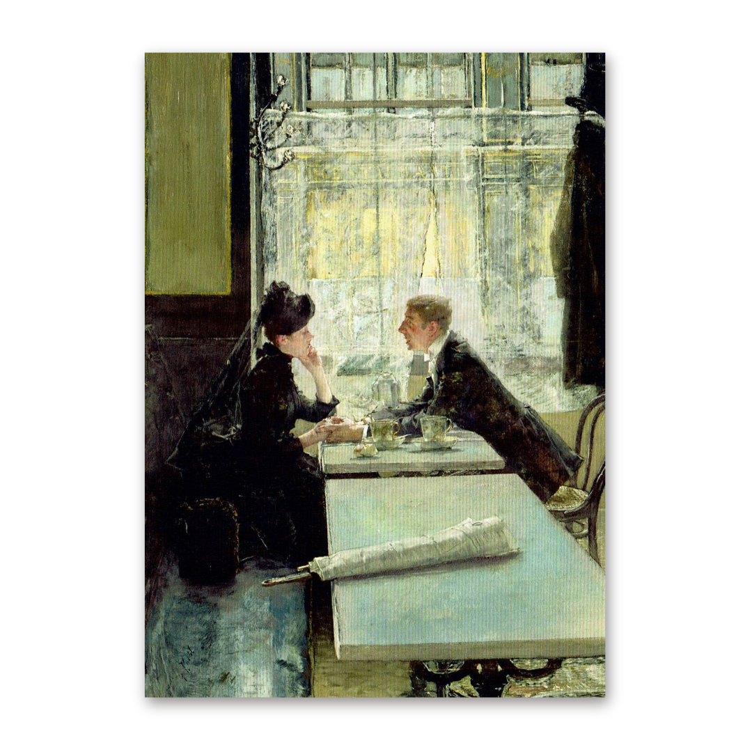 Postcard Liebespaar im Cafe, Gotthardt Johann Kuehl
