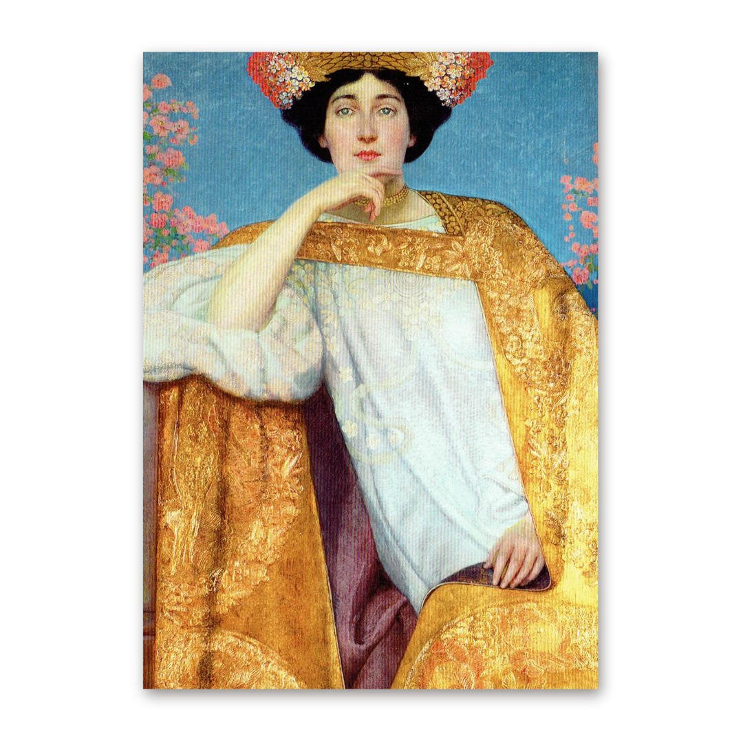 Postcard Porträt einer Frau in goldenem Kleid, Gustav Klimt