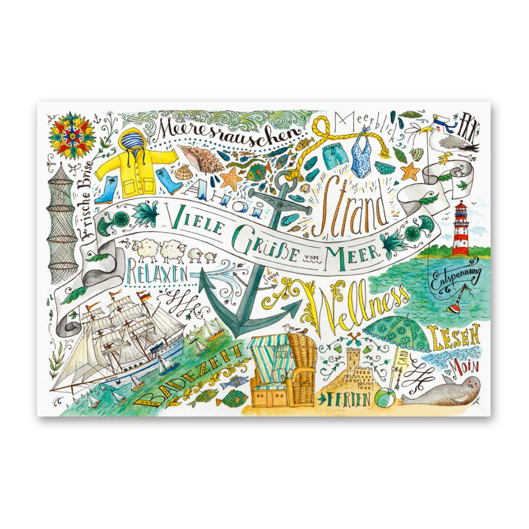 Postcard Viele Grüße vom Meer, Jiska de Waard